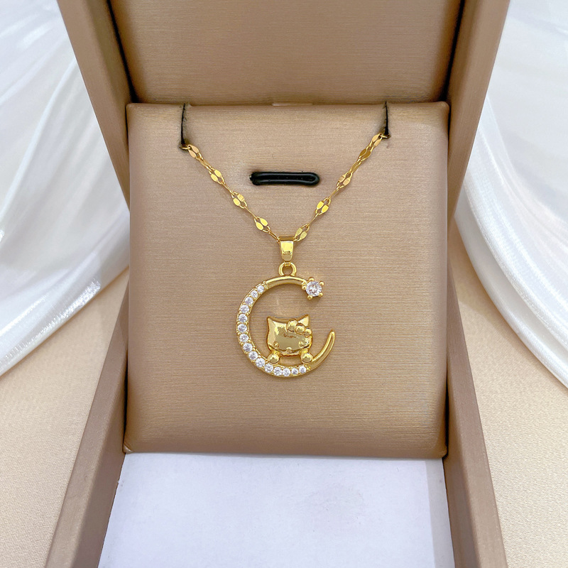 [Titanium Steel] Moon Cat Light Luxury Elegant Gorgeous Diamond Necklace Women's All-match Clavicle Chain Titanium Steel Chain
