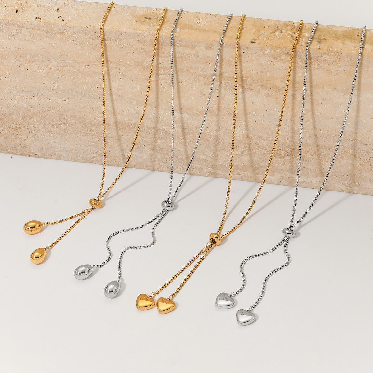 Vintage Cold Style Love Water Drop Pendant Necklace Women's Light Luxury Fashion Simple Pull-out Stainless Steel Heart Necklace