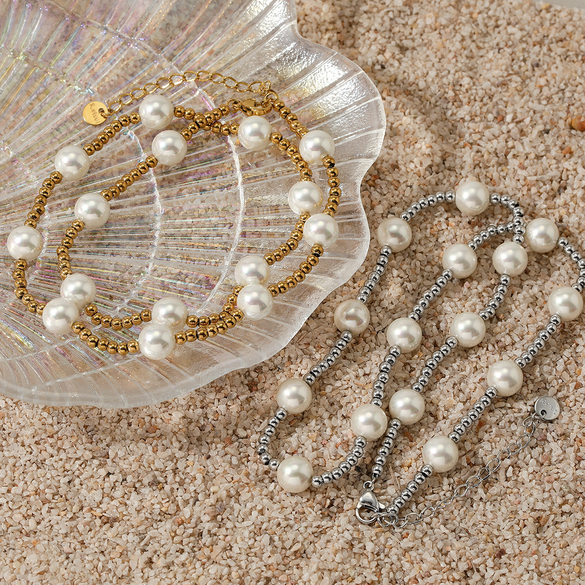 High-grade Bead Necklace Simple Beaded Design INS Fashion Temperament Stainless Steel Small European and American Atmospheric Neck Chain for Girls