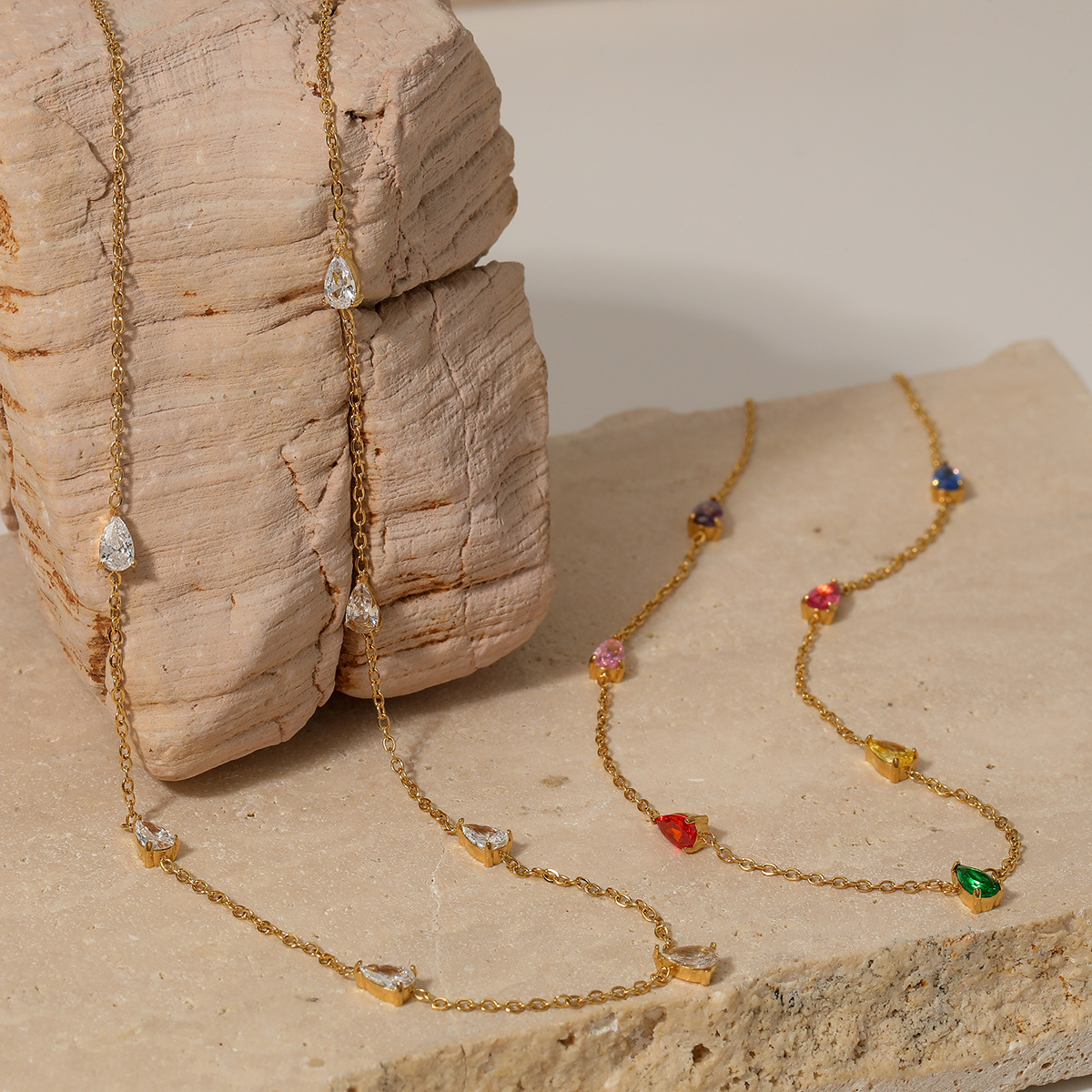 New Style Elegant Color Water Drop Zircon Pendant Necklace Exquisite High-grade Light Luxury Super Fairy Elegant High-grade Goddess Necklace