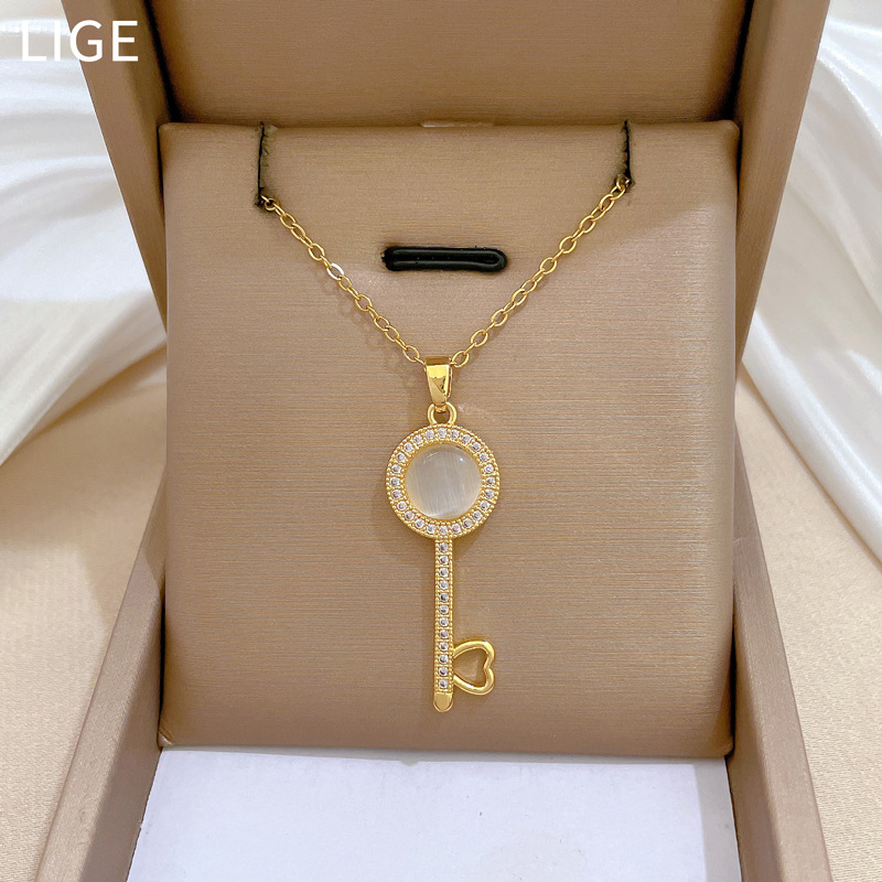[Titanium Steel] Opal Key Fashion Light Luxury Elegant Gorgeous Diamond Necklace Women's All-match Collarbone Chain Titanium Steel