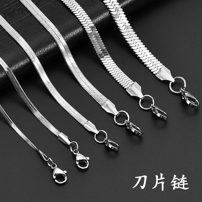 Cross-Border Hot-Selling Stainless Steel Blade Chain European and American New Men's and Women's Hip-Hop Personality Clavicle Flat Snake Necklace Titanium Steel Necklace