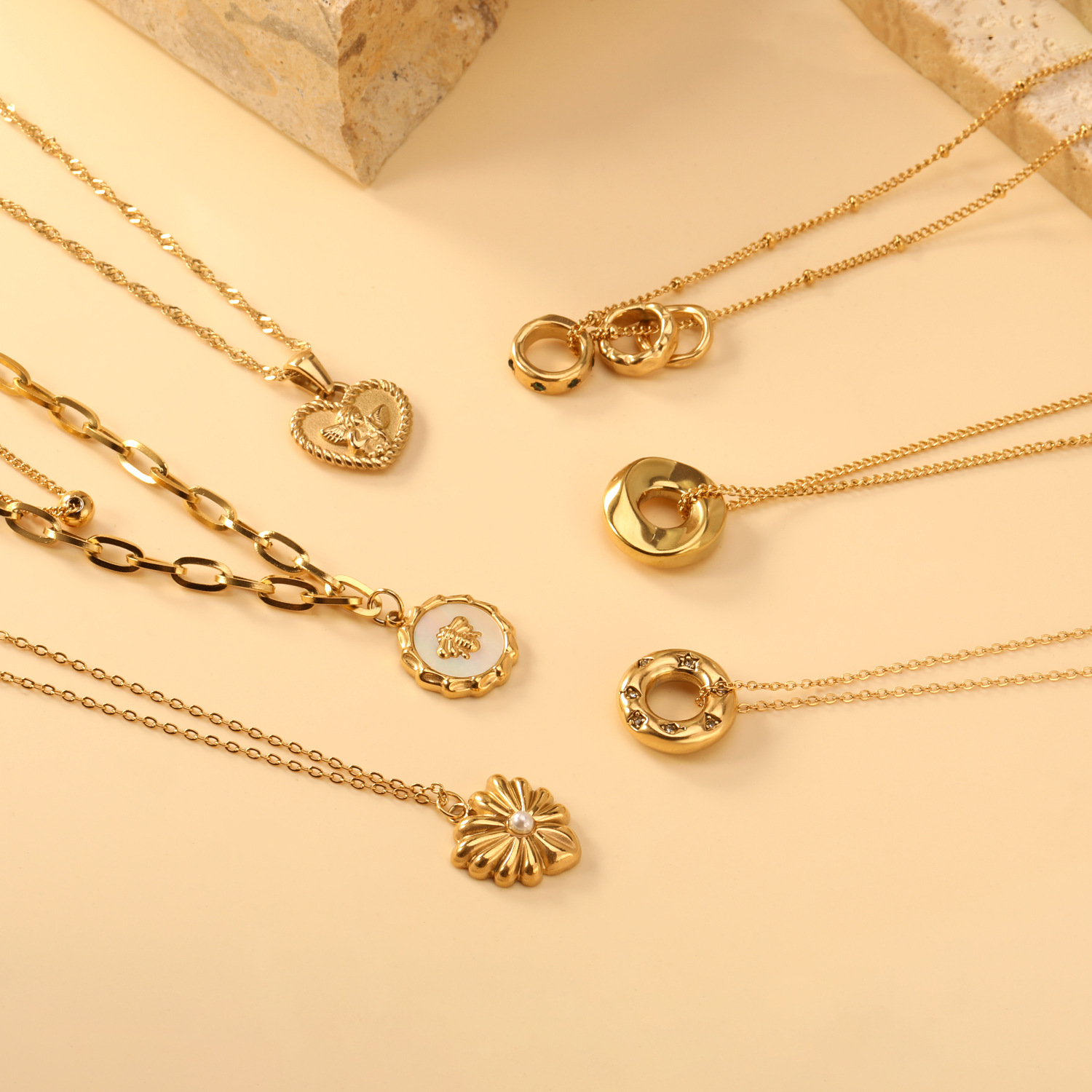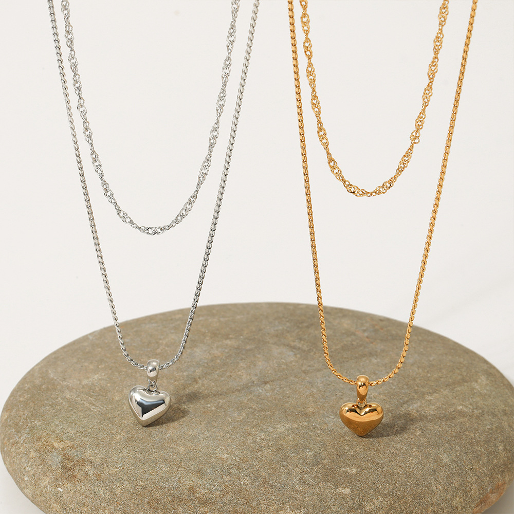 Stainless Steel Love Necklace Cross-border New Style Simple Style Double Layer Stacked Wear High-grade Sense Electroplated Gold Love Pendant Necklace