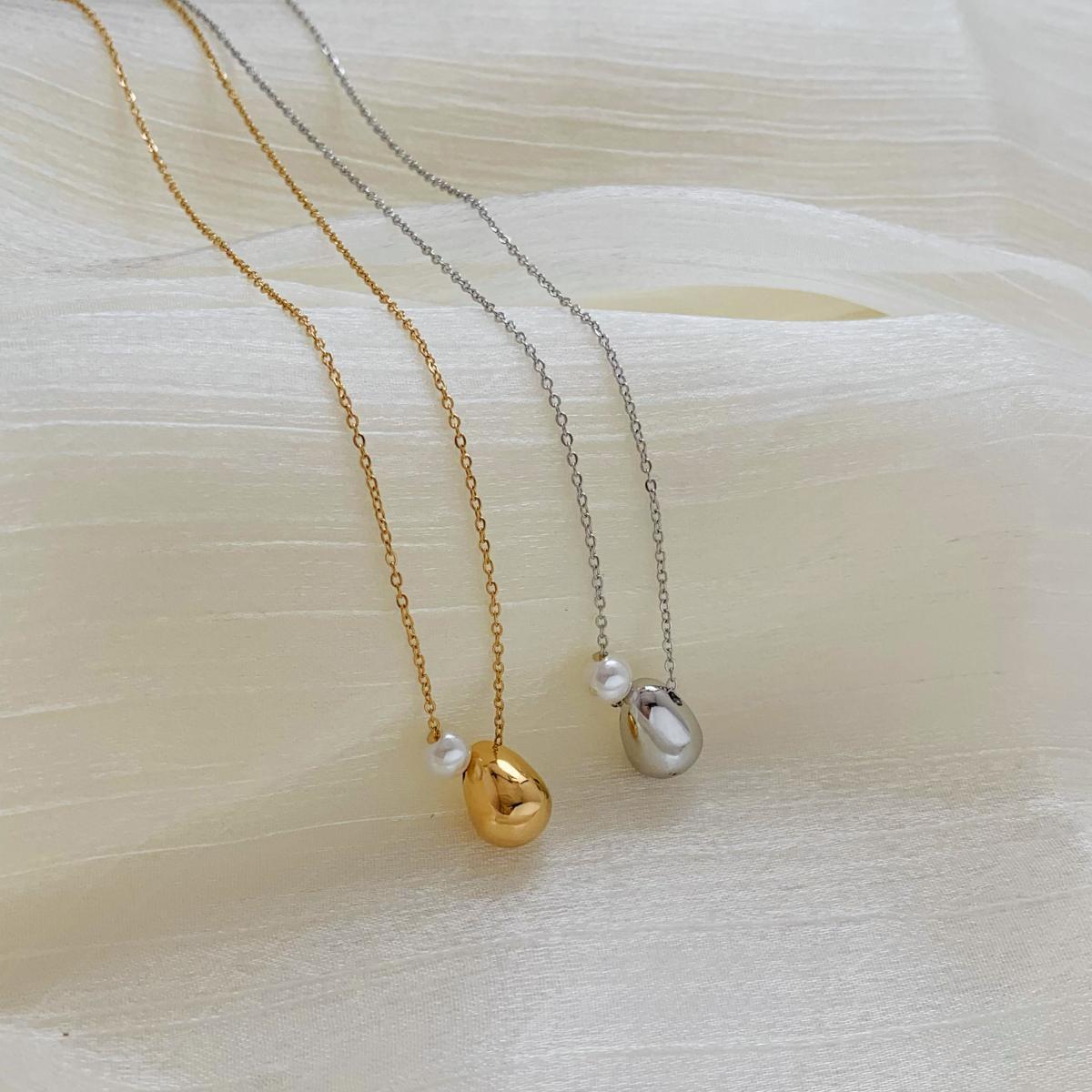 Fashionable New Water Drop Pearl Pendant Necklace Stainless Steel Exquisite Light Luxury Niche Design Popular Hot Style Clavicle Chain
