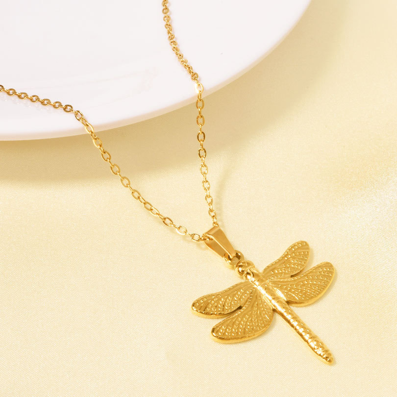 304 Stainless Steel European and American Elegant Light Luxury 18K Gold Exquisite Necklace Women's Simple Fashion Dragonfly Collarbone Chain First Jewelry