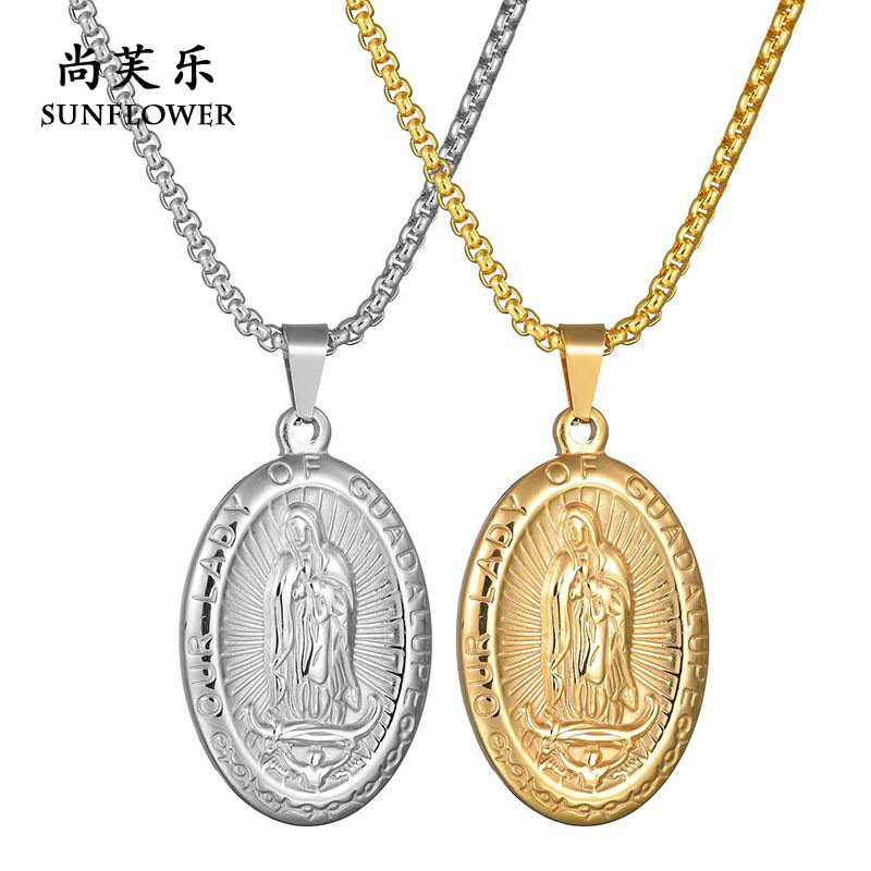 European and American Retro Titanium Steel Jewelry Embossed Portrait Oval Pendant Clavicle Chain Men and Women Stainless Steel Necklace Manufacturer Supply