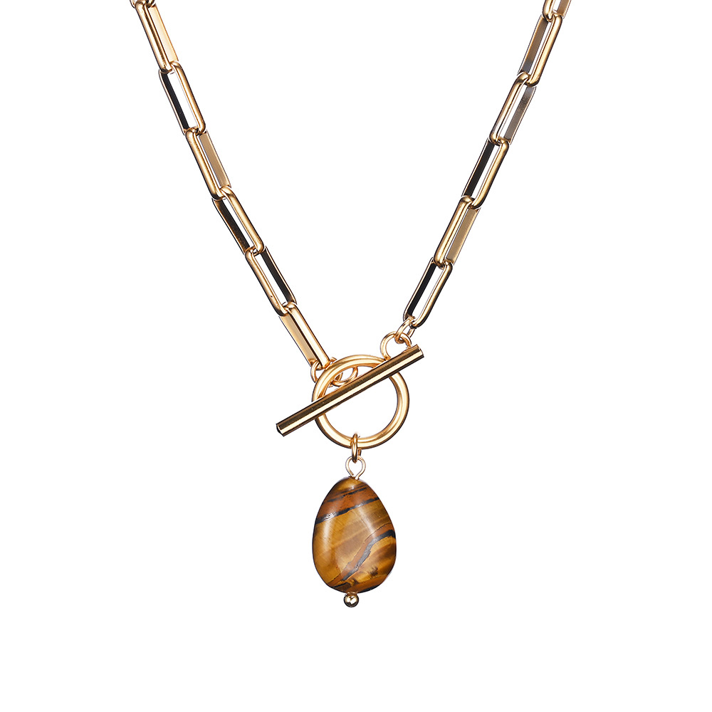 Four Seasons Women's Waterproof Stainless Steel Paperclip Chain Baroque Pearl Water Drop Amethyst Tiger Eye Peacock Stone Necklace