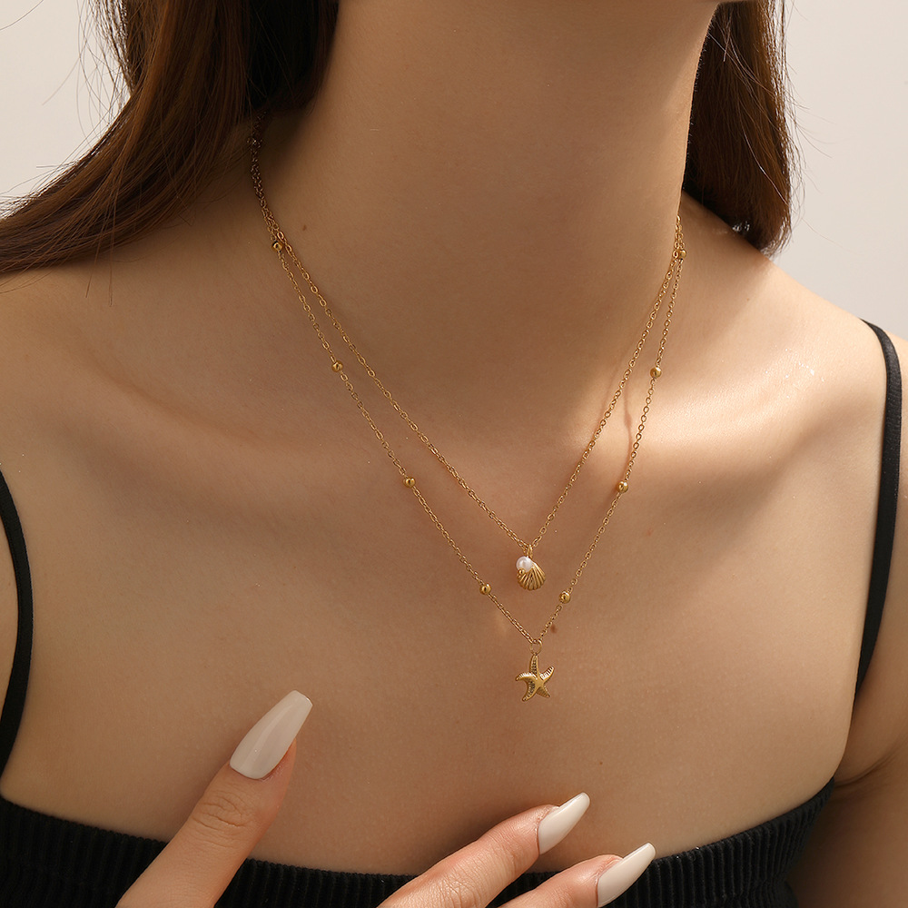 2025 New European and American Cross-border Starfish Shell Necklace Female Niche Design Sense Internet Popular Ins Cold Style Clavicle Chain