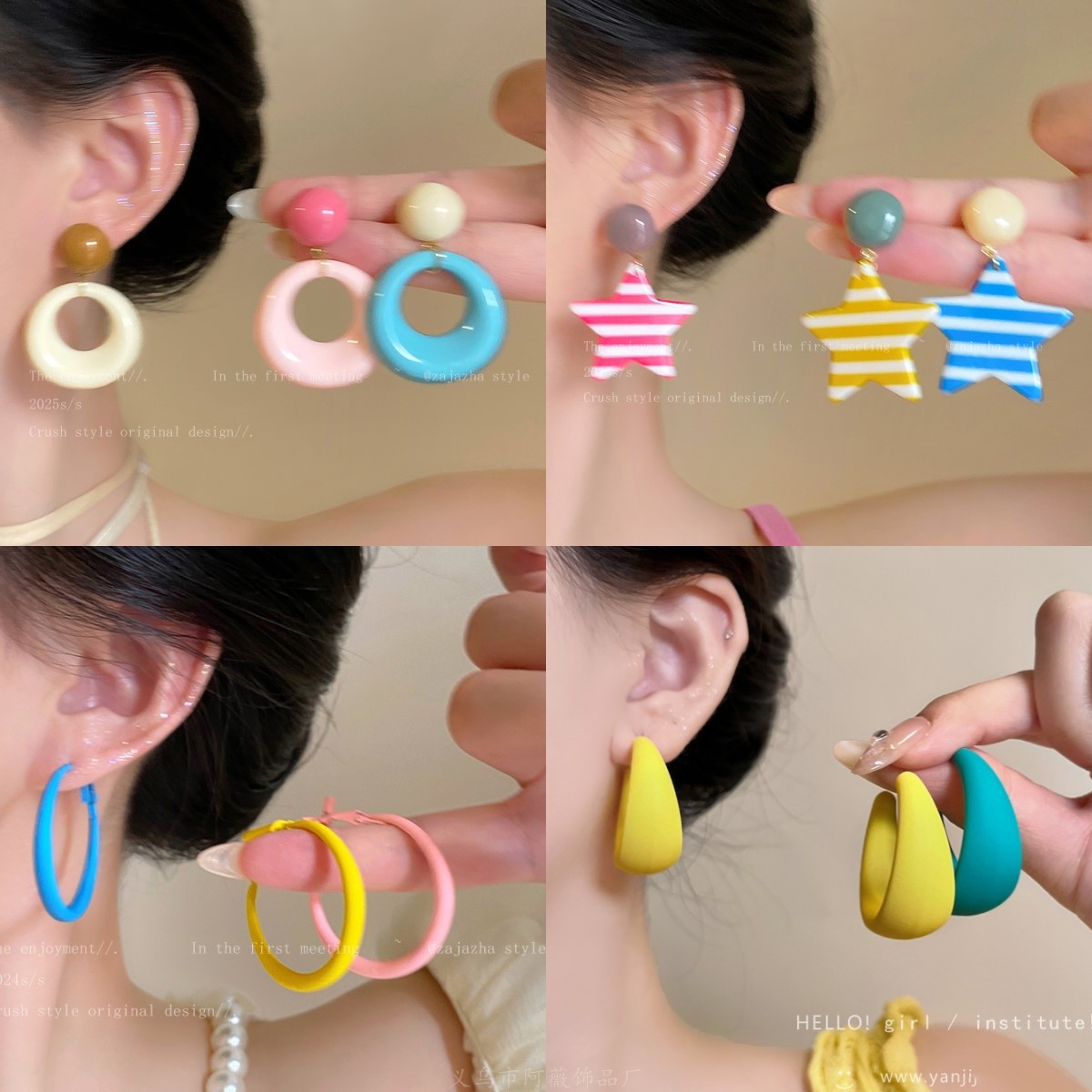 Dopamine Colorful Earrings for Women Y2K Sweet and Cool Sexy Barbie Earrings Seaside Resort Style Colorful Hoop Earrings