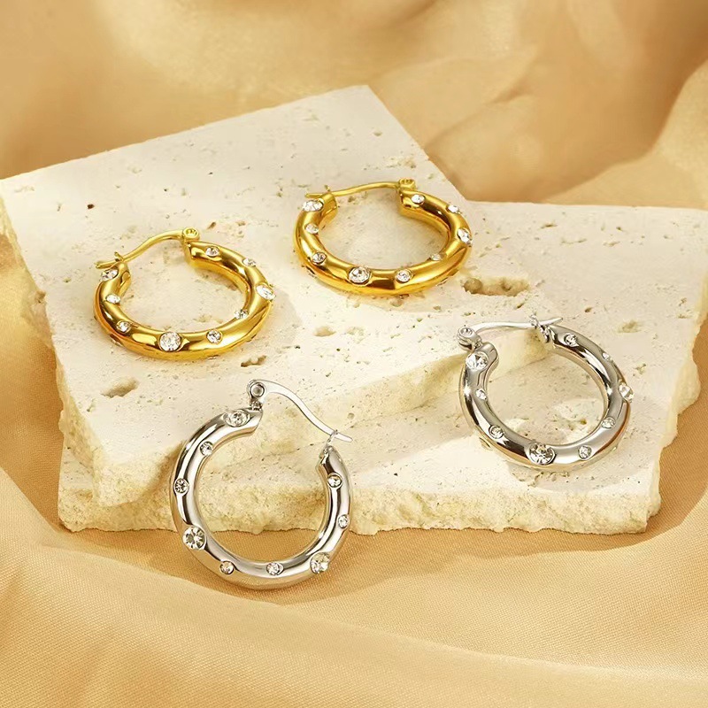 Amazon stainless steel ring-shaped zircon gold earrings Joker round coil micro set ear buckle earrings zircon earrings