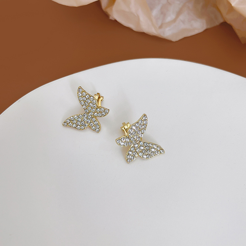 South Korea Dongdaemun Exquisite and Small Micro-inlaid with Diamond Butterfly Zircon Ear Clip Ear Buckle Super Fairy Flash High-end Earrings for Women