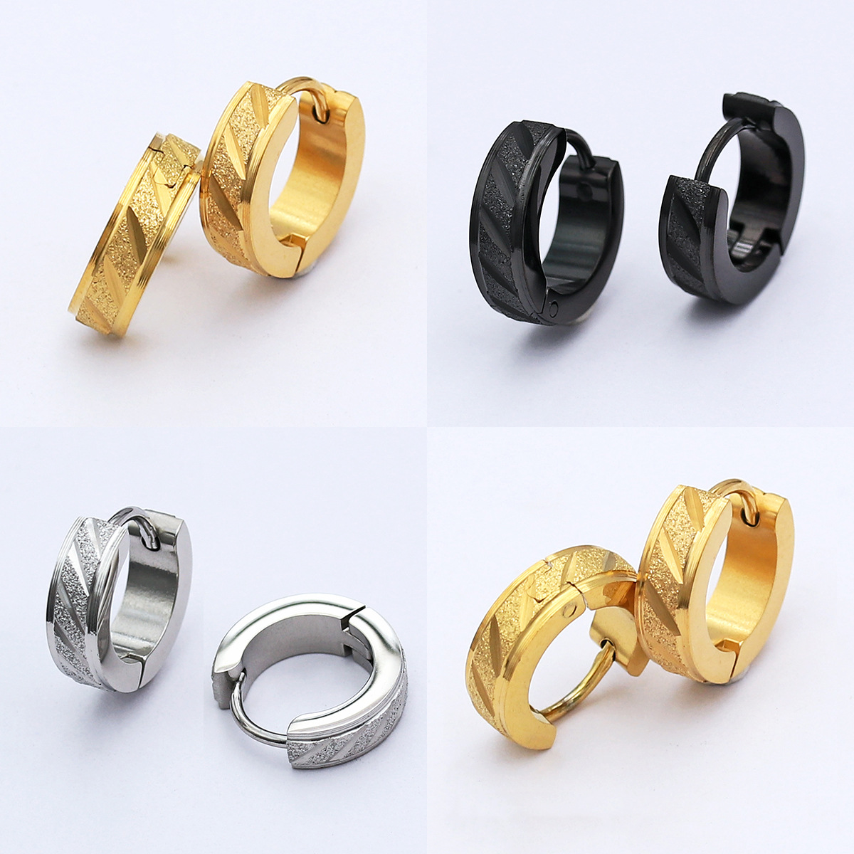 Cross-Border Aliexpress High-End Stainless Steel Double-Step Pressed Sand Pattern Simple Hip-Hop Gold-Plated Frosted Earrings