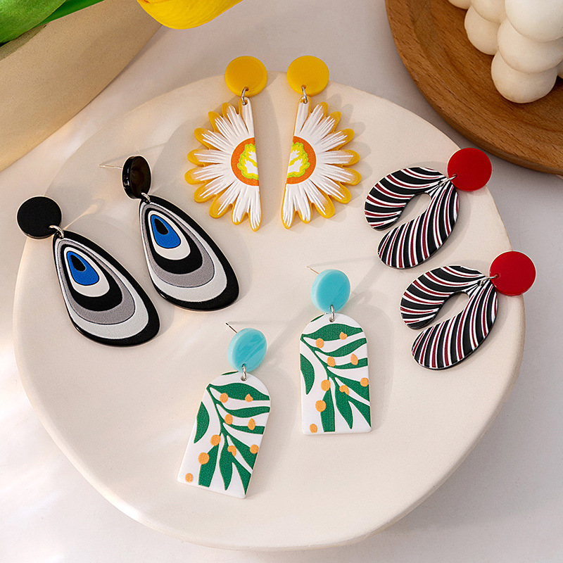 Silver Needle European and American Daisy Flower Acrylic Earrings Simple Design Irregular Earrings Contrast Color Earrings for Women
