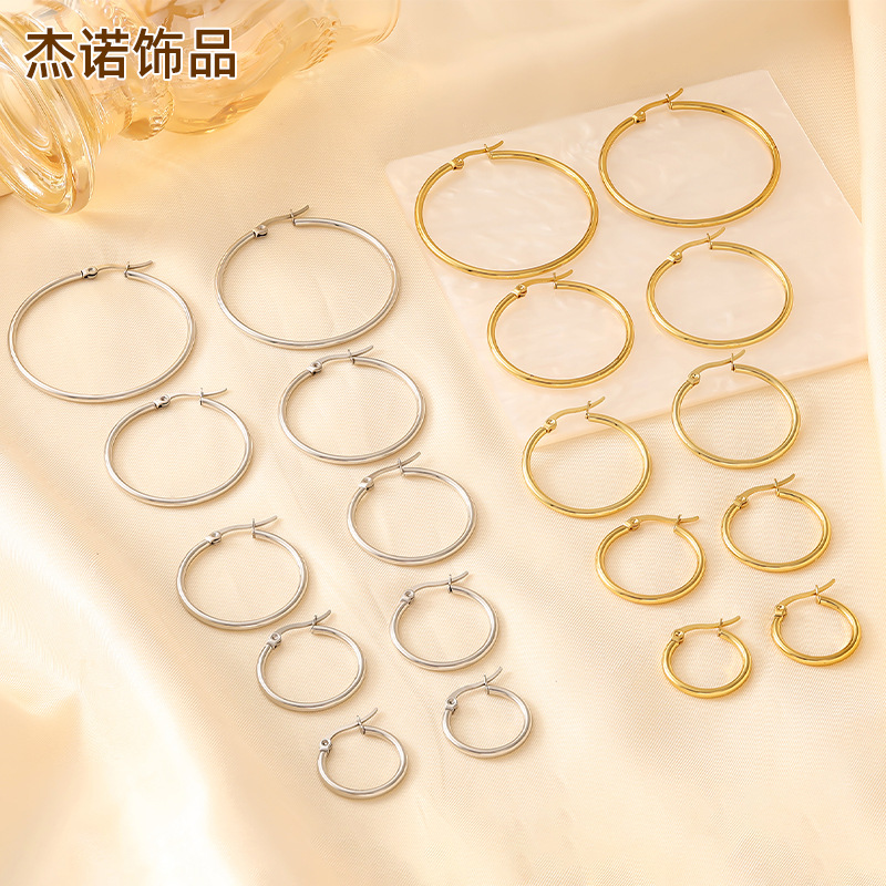 18K Gold Stainless Steel Simple Earrings Classic Versatile Smooth Hoop Earrings Stacked Retro European and American Cross-Border Earrings