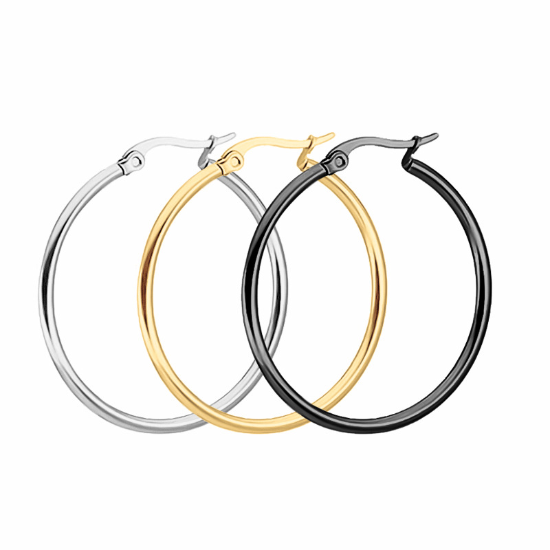 European and American Simple Stainless Steel Earrings Popular Titanium Steel Wire Earrings Large Circle Round Earrings Export Wholesale