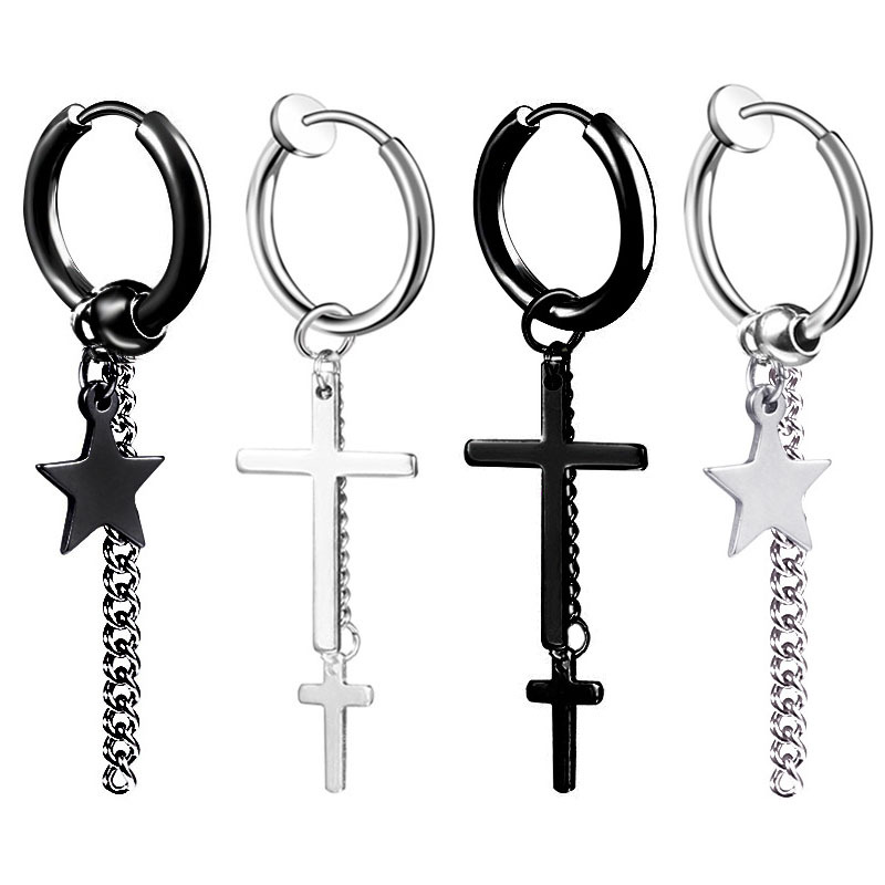 Unisex Style Stainless Steel Earrings, Ear Clips, Unisex Trendy Chain Cross Star Earrings, Accessible Luxury and High-End Jewelry
