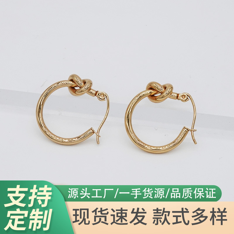 316 pin stainless steel knotted earrings French plain circle geometric ear buckle ring hollow rope cute circle earrings