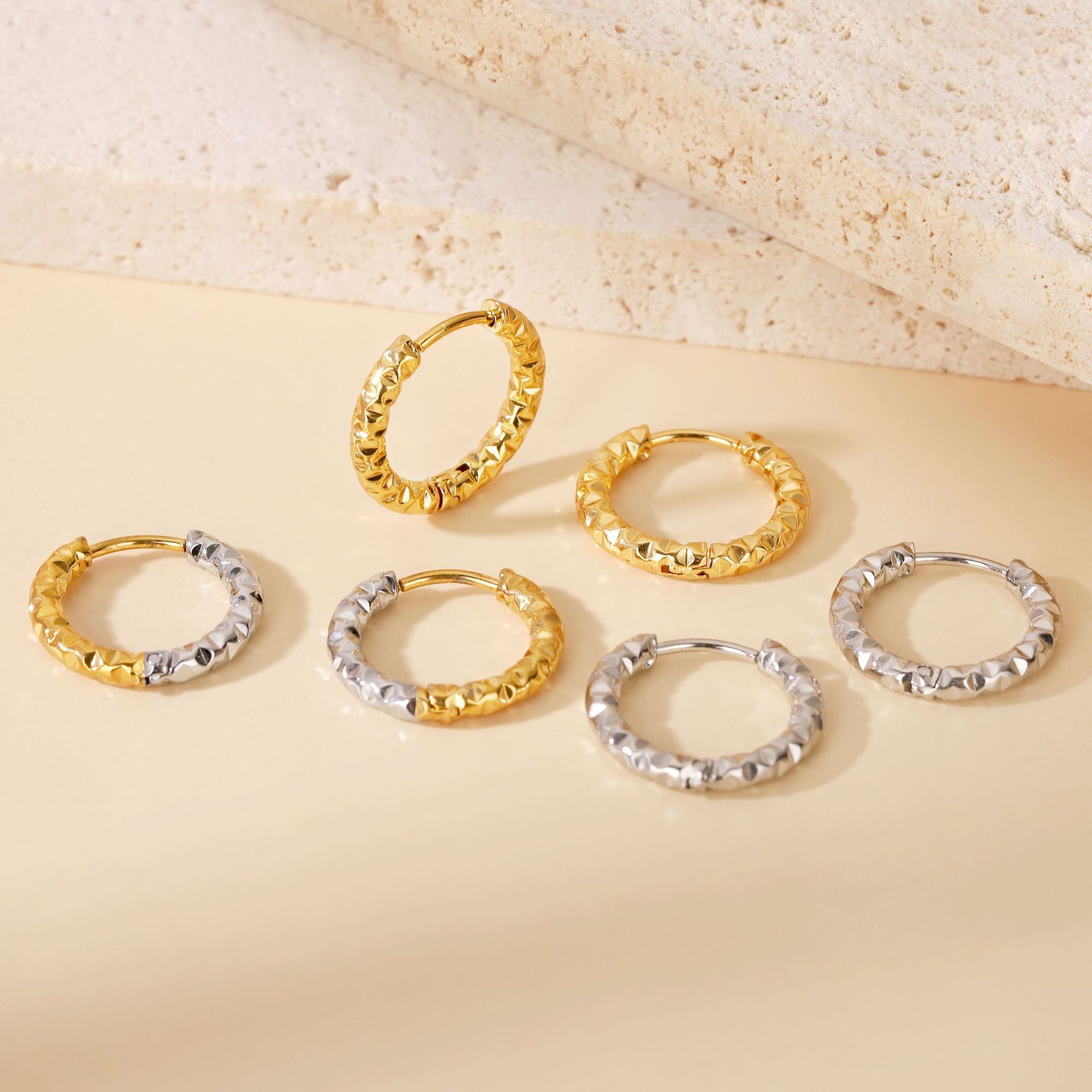 Net red 316 stainless steel circle earrings set European and American fashion titanium steel coil men's and women's jewelry wholesale