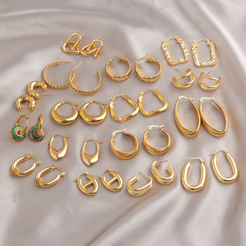 European and American Cross-border Geometric Earrings Zircon Stainless Steel Jewelry suit Simple Temperament Electroplating Light Luxury Golden Earrings
