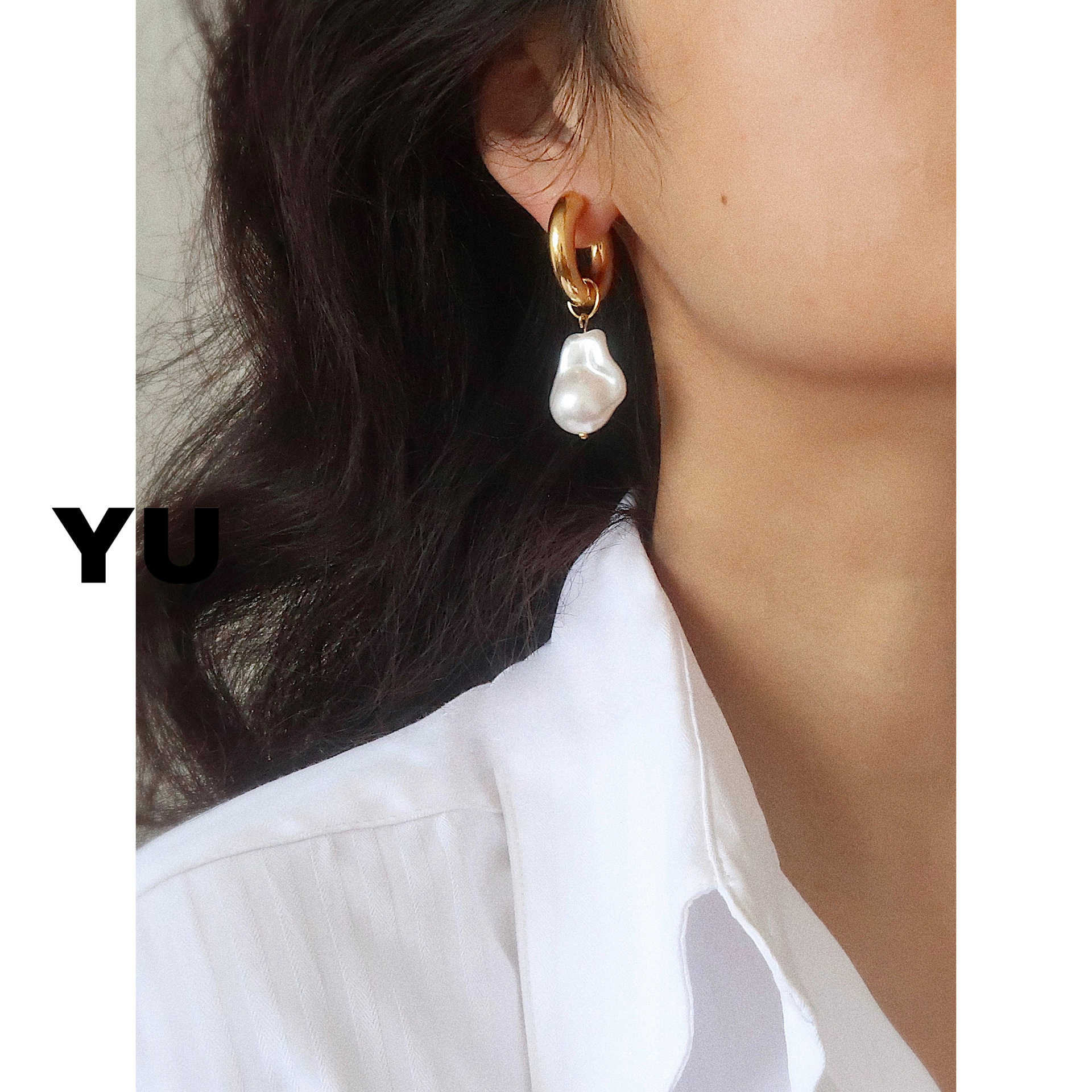 Baroque Pearl Earrings with Yu Jewelry Women's Metal Ear Buckle Retro Simple Elegant Internet Celebrity Titanium Steel Long Earrings