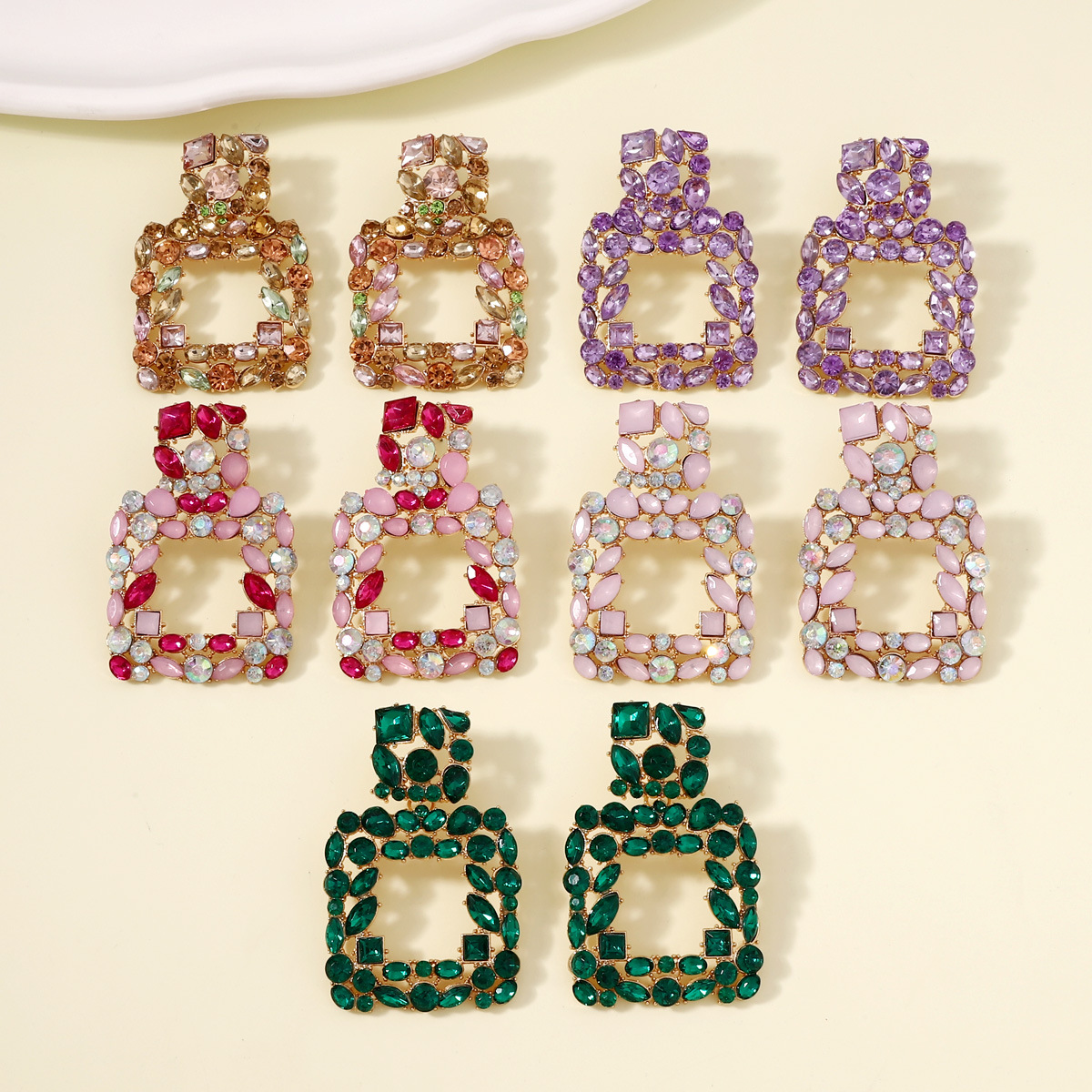 Yiwu jewelry cross-border European and American geometric square diamond-embedded party niche fashion trendy all-match temperament earrings earrings