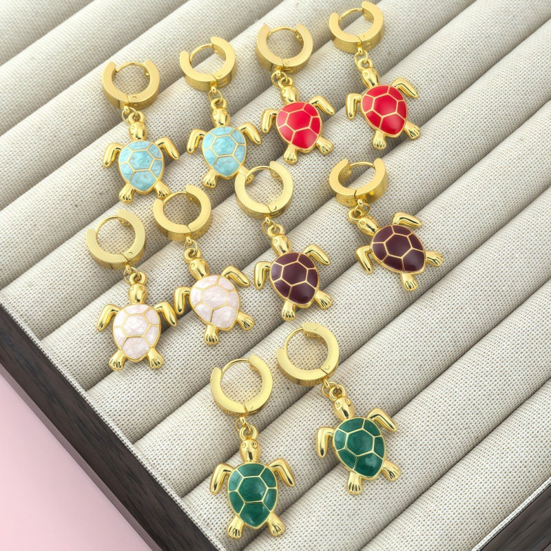 European and American Cross-Border New Cartoon Animal Oil Dripping Stainless Steel Turtle Earrings Anniversary Gift Jewelry Wholesale