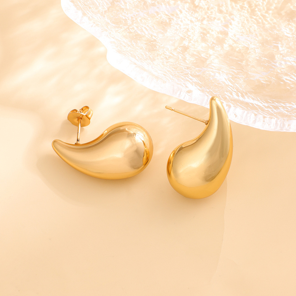 Cross-Border European and American Popular Fashion Light Luxury Earrings Stainless Steel Gold-Plated Titanium Steel High-Grade Photosensitive Surface Water Drop Solid Earrings