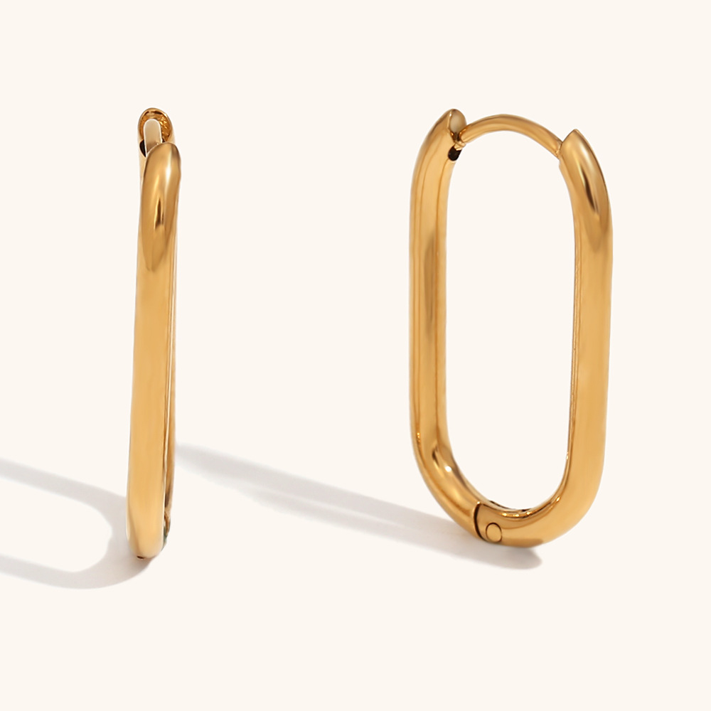 European and American cross-border hot sale fashion simple personality ear buckle stainless steel plated 18K gold long O-shaped ear ring earrings jewelry