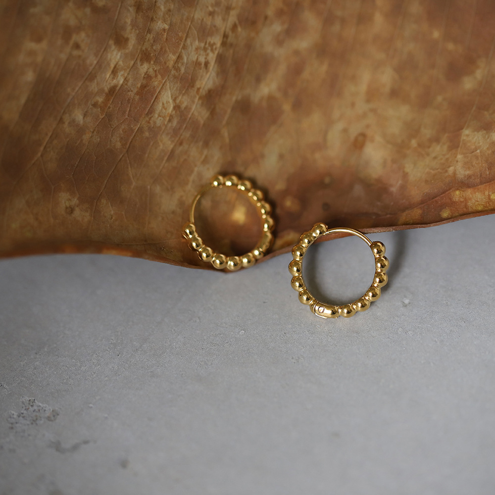 French Simple Ins Style Retro Work Clothing Small Gold Bead Ball Earrings Titanium Steel Gold Silver Wholesale