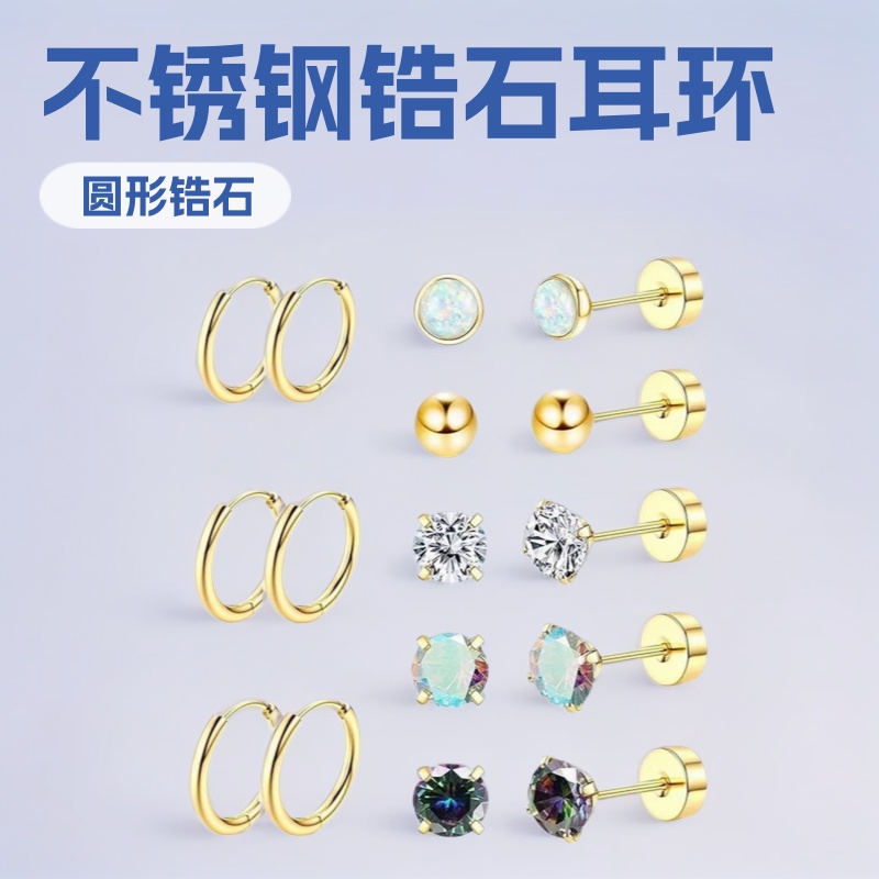Stainless Steel Jewelry Round Zircon Earrings Fashion Pearl Set Factory Direct Sales Wholesale