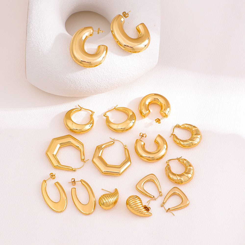 Cross-border European and American Fashion Light Luxury Earrings Stainless Steel Gold Plated Titanium Steel C- shaped Opening High-grade Elegant Hollow Earrings