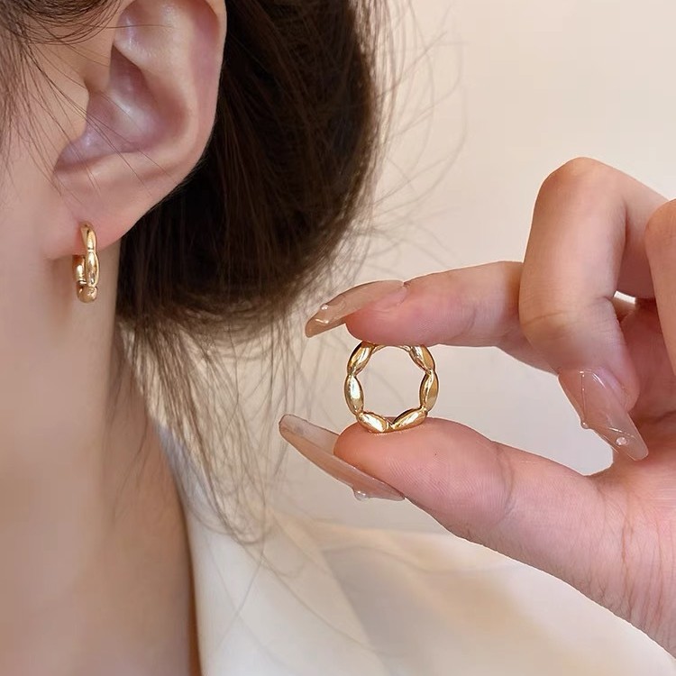 Minimalist Rice Grain Hoop Earrings for Women, Niche Design, Fashionable and Unique Temperament, Versatile Hoop Earrings, Minimalist Style