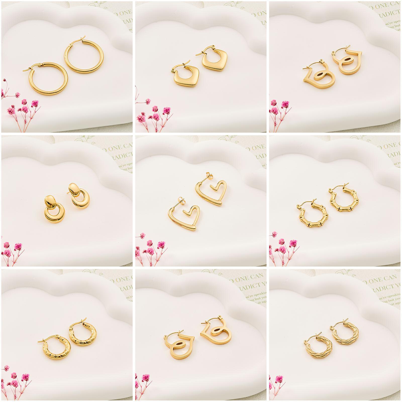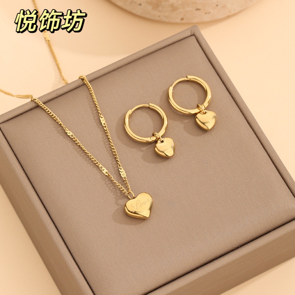 Cross-Border Hot Selling Heart Earrings Necklace Cool Style Small Circle Girl Gold Non-Fading Circle Earrings Wholesale