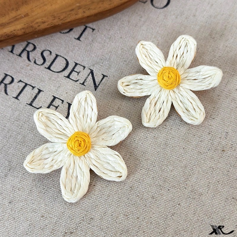 Sicily~Seaside Beach Vacation Sunflower Exaggerated Earrings Women's Earrings Handmade Rattan High-End Retro