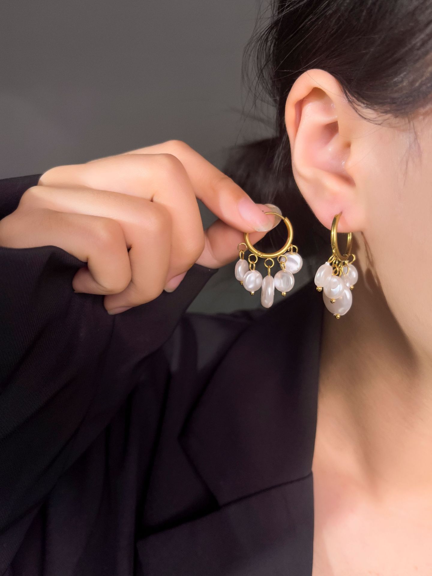 New super fairy white flower temperament high-end pearl tassel light luxury design earrings retro titanium steel ear buckle