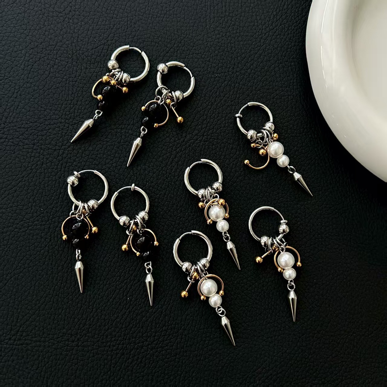 New Cross-Border Export Gothic Punk Stainless Steel Earrings for Women Rivet Pointed Cone Double Ring Punk Factory Direct Sale
