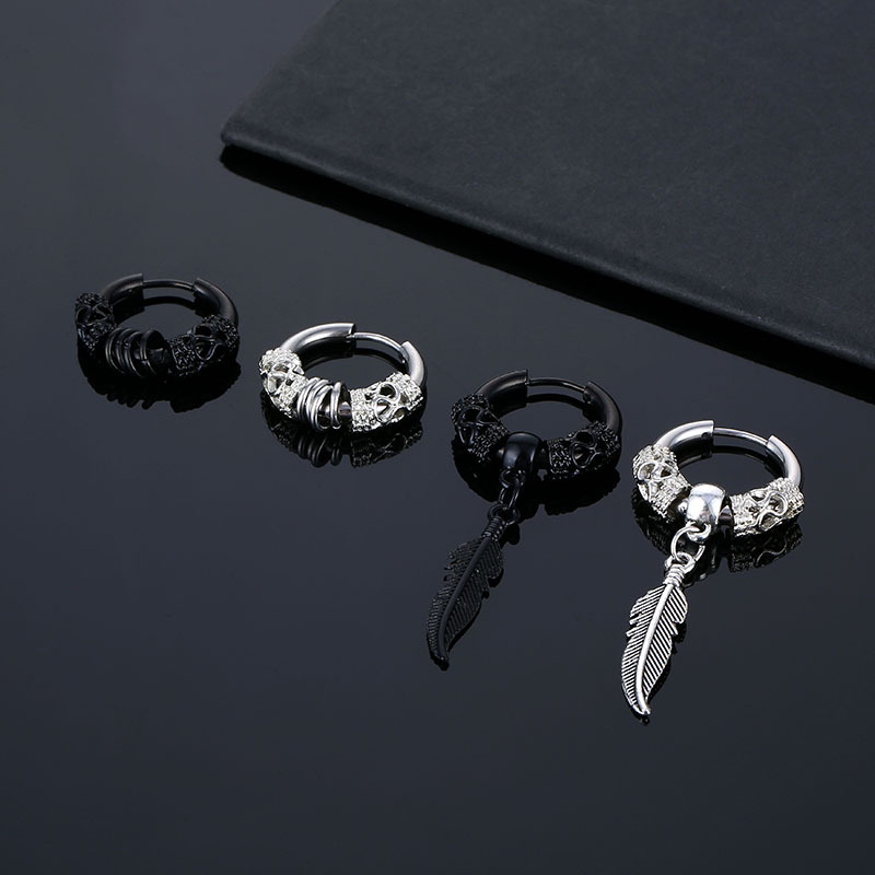 Vintage Xizang Dragon Feather Pendant Stainless Steel Round Wire Earrings Titanium Steel Ear Buckle Hip Hop Men's and Women's Ear Ring Earrings