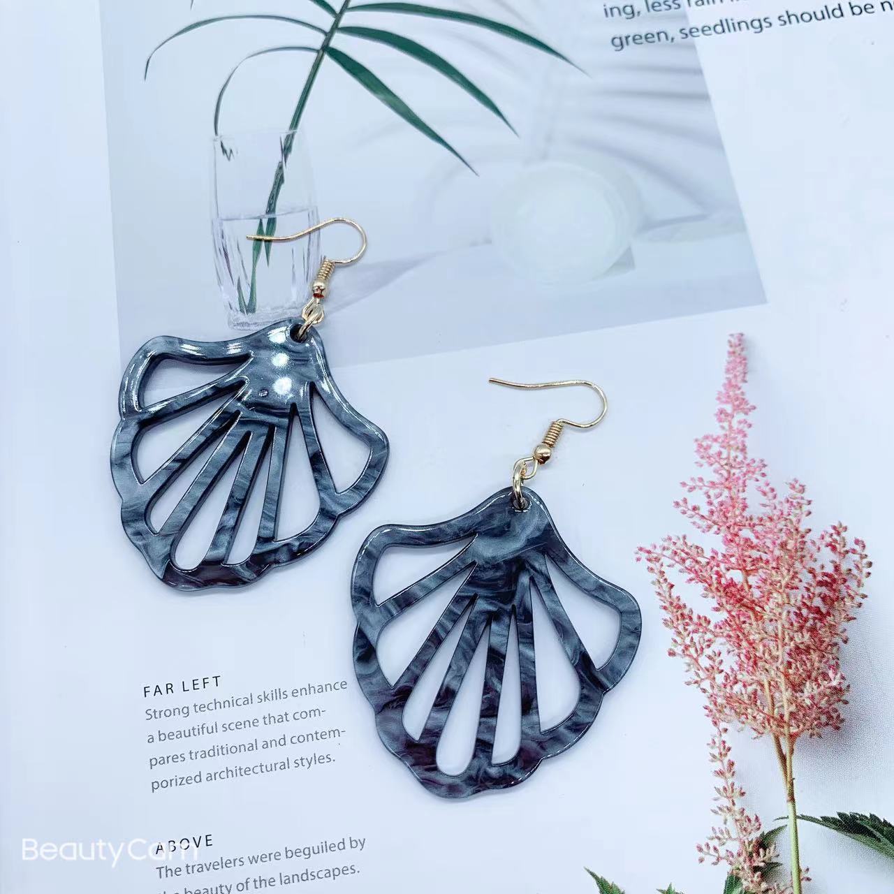 Europe and the United States cross-border creative new popular temperament fashion hollow fan earrings acrylic earrings manufacturers wholesale.
