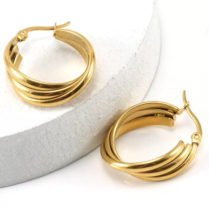 Cross-border classic three-ring stainless steel earrings European and American style three-in-one twisted three-line multi-layer cross-design earrings
