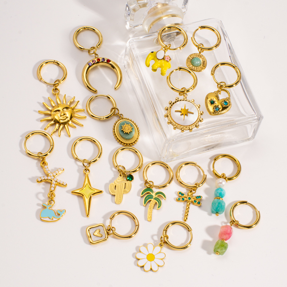 Cross-Border Popular New Stainless Steel Earrings New Plate Abalone Sticker Oil Dripping DIY Acrylic Women's Earrings