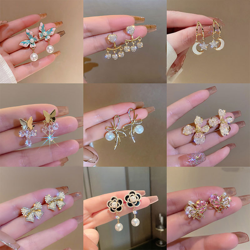 South Korea new fashion flower Pearl geometric bow earrings high-grade versatile light luxury temperament Internet celebrity earrings