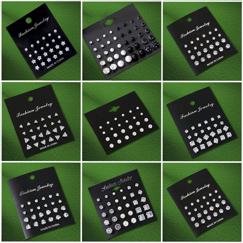 European and American Cross-border Zircon Pearl Earrings 12 Pair Combination suit Affordable Earrings Simple Fashion Unisex Earrings