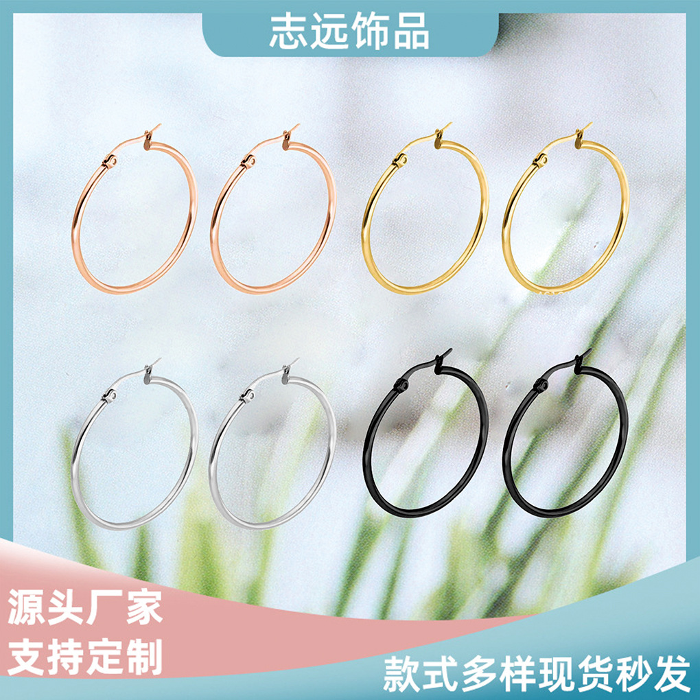 Zhenping Stainless Steel Earrings Simple Stylish Titanium Steel Round Wire Earrings Polished Earrings Neutral European and American Earrings Circle Earrings