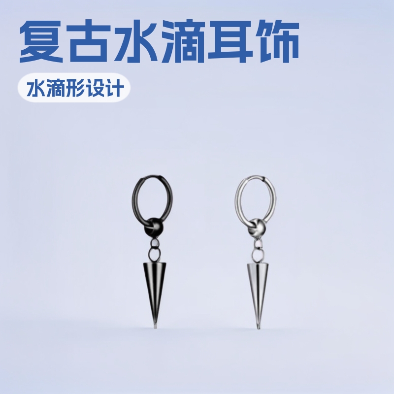 Cross-Border Popular Korean Style Stainless Steel Pointed Cone Earrings Coil Ear Buckles Water Drop Pointed Cone Hip-Hop Pendant Retro Style Earrings