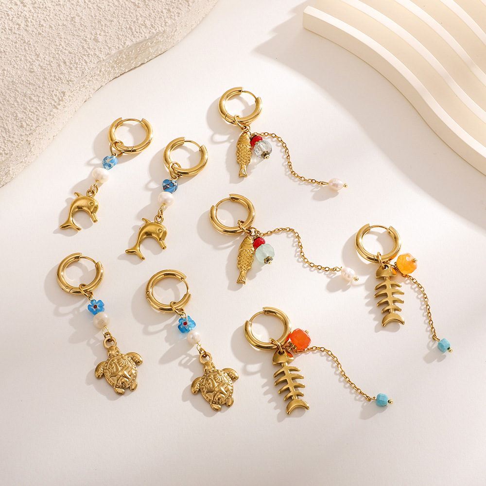 European and American Ocean Wind Dolphin Turtle Fish Stainless Steel Natural Stone Women's Earrings Ear Ring Simple All-match Women's Ear Ring