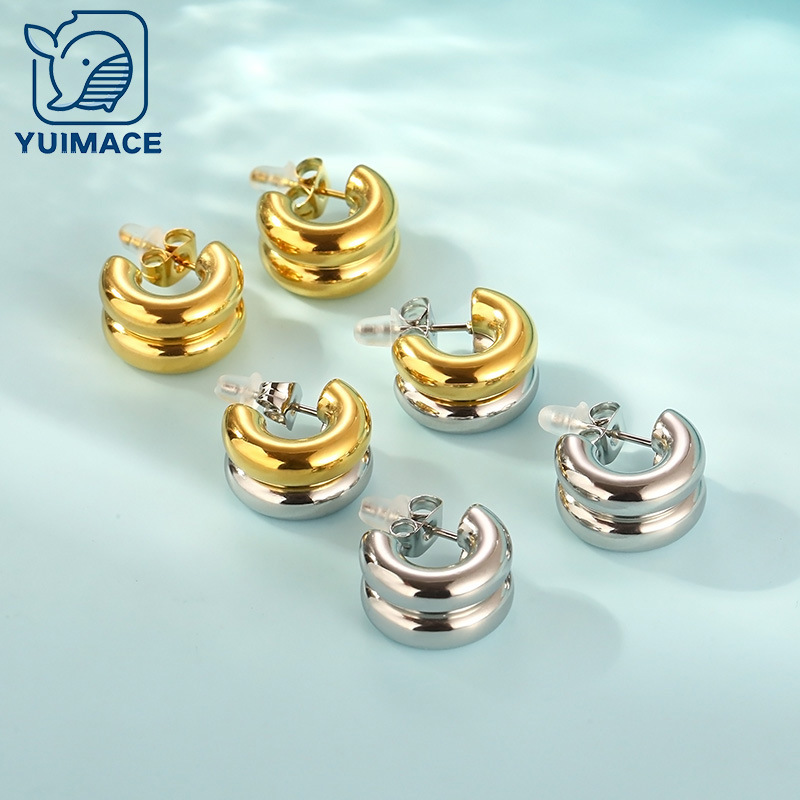 Cross-border gold two-color C- shaped earrings stainless steel earrings 18k commuter fashion titanium steel earrings wholesale
