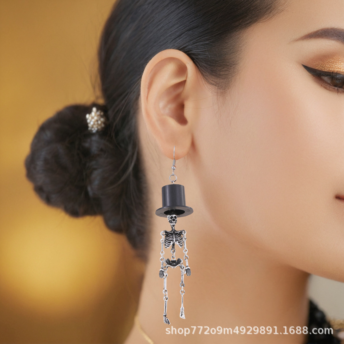 Halloween Gothic Event Skeleton Earrings, Retro European and American Humanoid Wedding Bride Skull Earrings