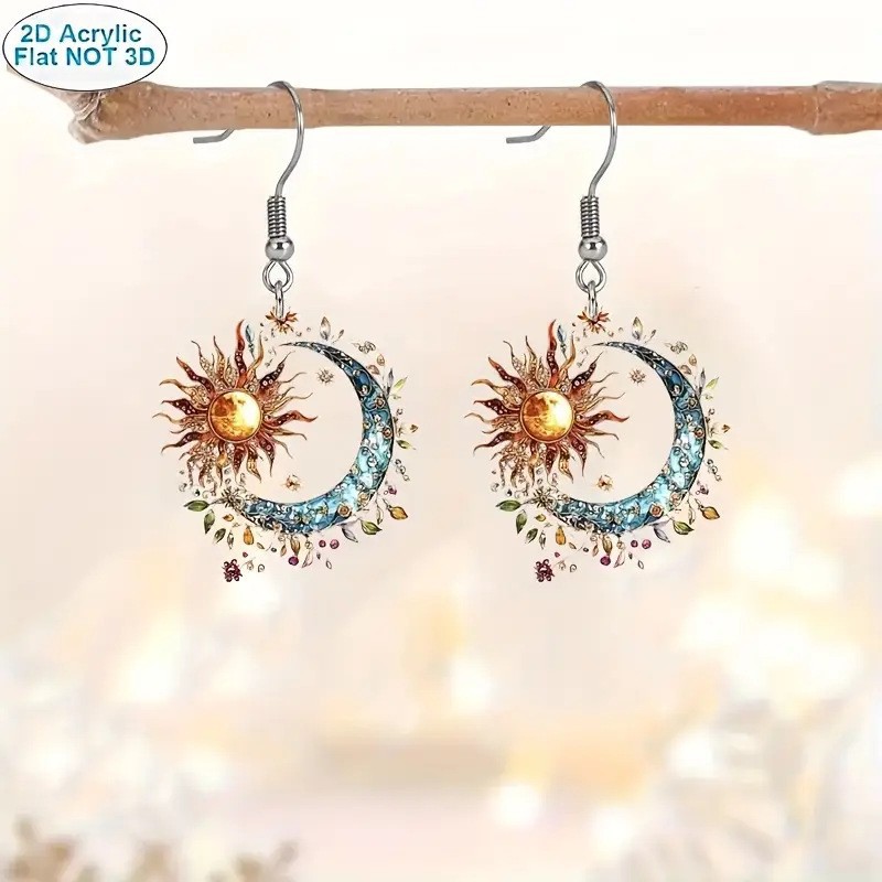 Cross-Border Hot Selling Colorful Moon Earrings Bohemian Style Flat Acrylic Sun and Moon Pendant Earrings
