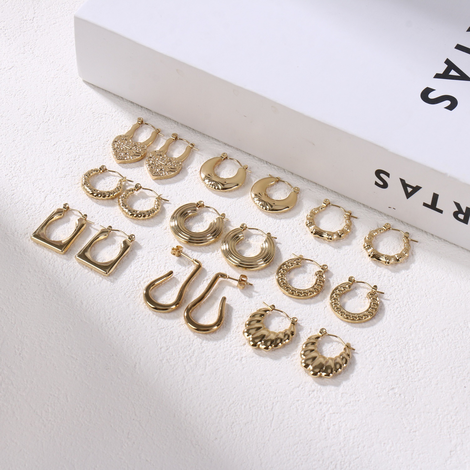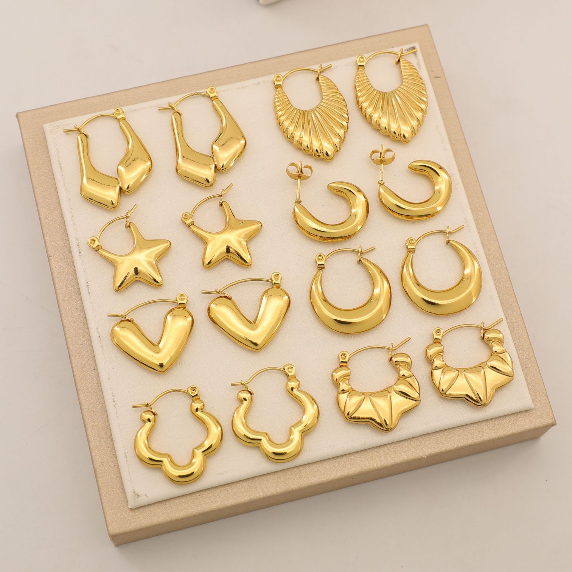 European and American Fashion Ol Cross-Border Earrings High-End Stainless Steel Temperament Geometric Circle Heart Versatile Earrings Wholesale