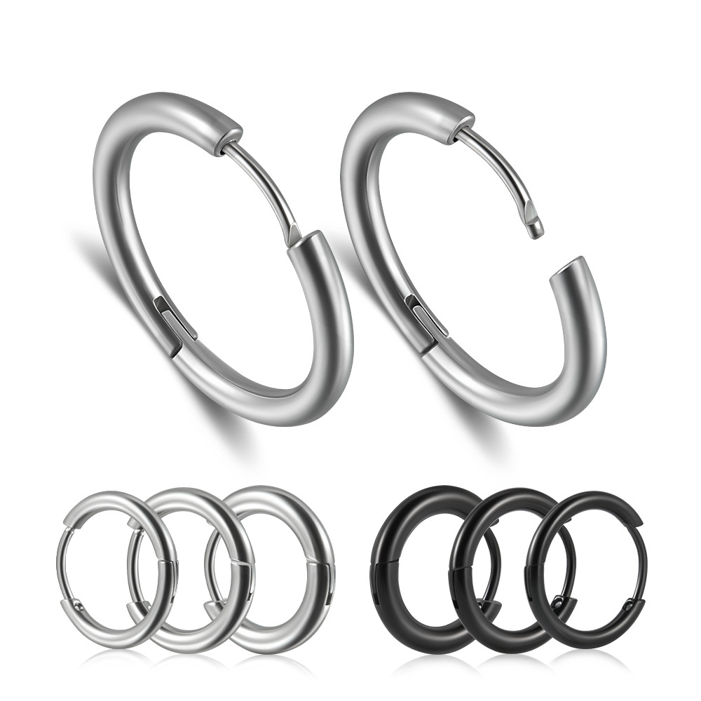 Cross-border stainless steel ear buckle large size simple piercing earrings ear ring personality fashion electroplated fine needle ear bone ring